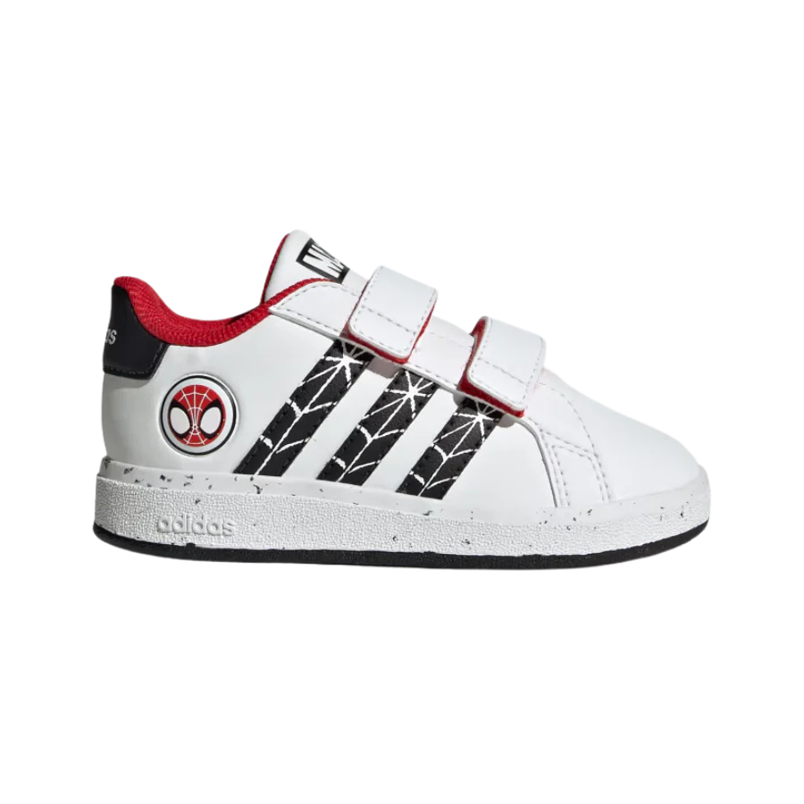 Ya sea que estén en la misión de salvar el mundo o simplemente disfrutando del patio de recreo, estos tenis adidas para niños los llevarán al estilo de un superhéroe. Lucen estampados de Spider-Man de Marvel y un estampado de telaraña sobre las 3 Franjas. Las tiras ajustables de cierre por contacto los hacen muy fáciles de poner y quitar. El exterior suave mantiene cómodos sus pequeños pies durante todo el día.
