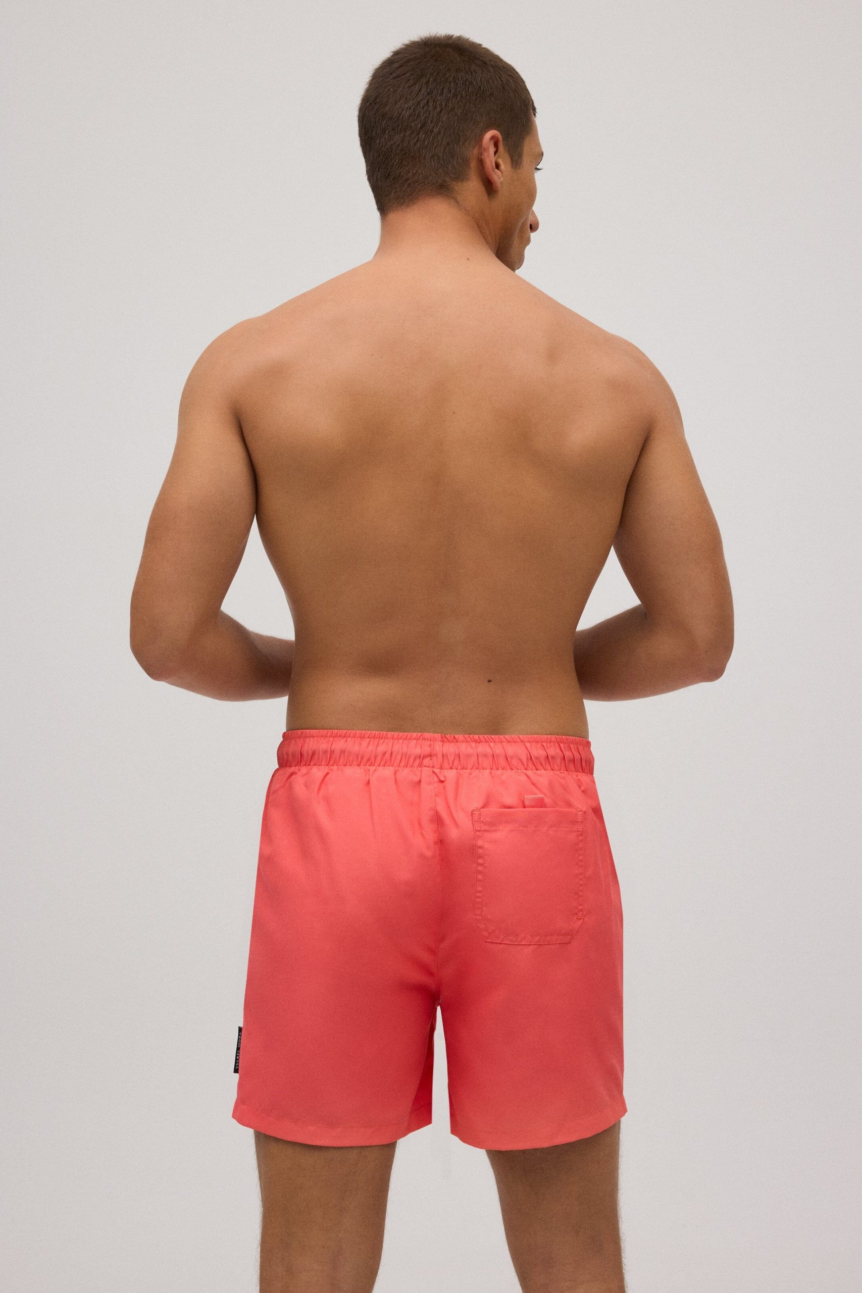 Las imágenes muestran el bañador desde distintos ángulos, destacando su acabado liso y detalles como el cordón bicolor ajustable, el bolsillo trasero con botón y el logo discreto de la marca. Una propuesta elegante y funcional para el verano.