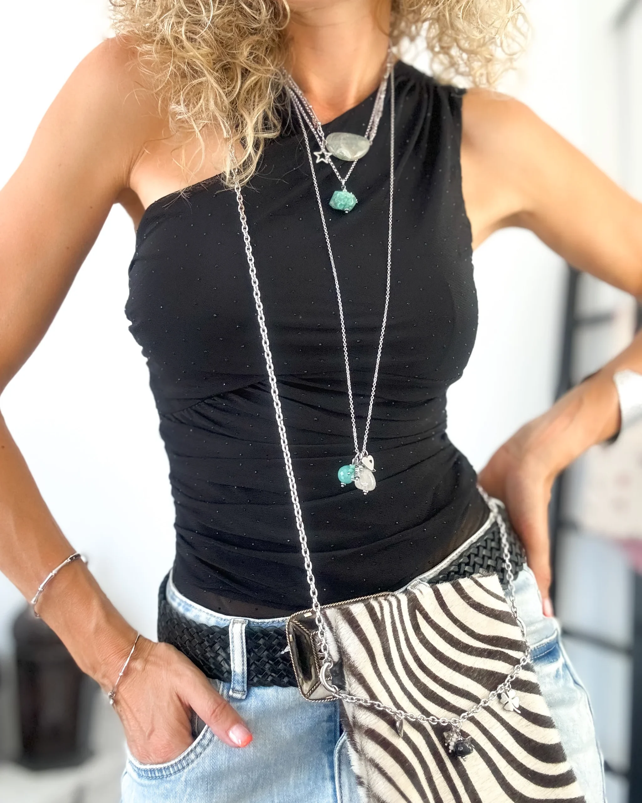 Body oscuro cruzado de tull y mini strass de color oscuro. Tirante fruncido ancho. Una preciosidad, puedes darle un toke elegante o más grunge.