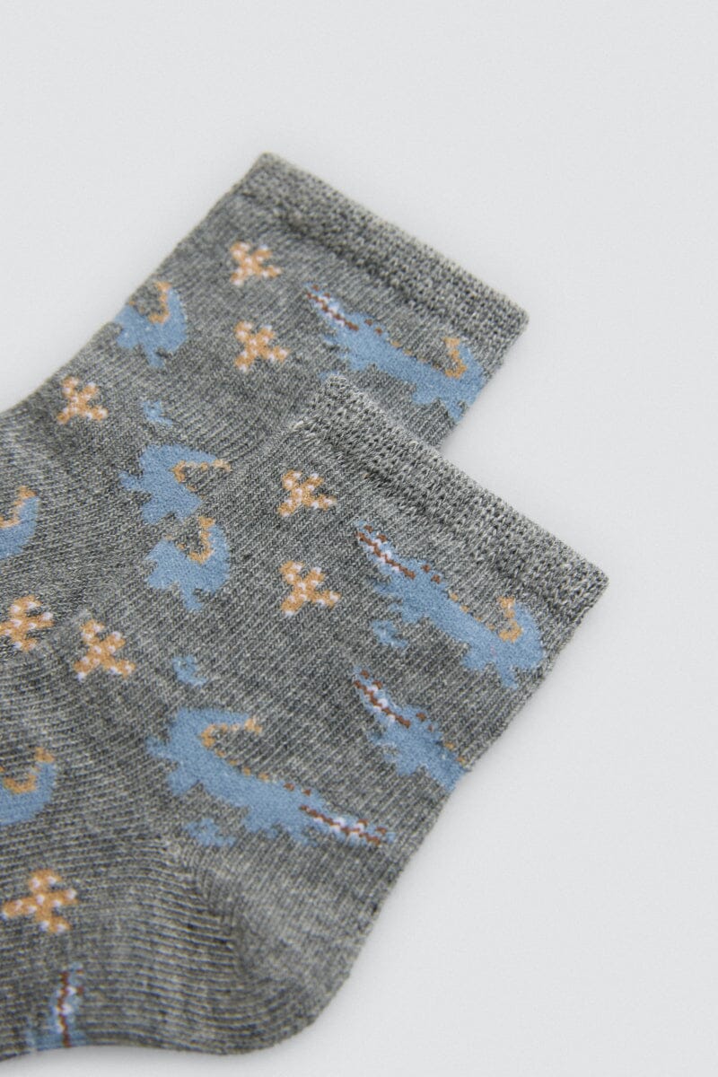 Incluye diseños en tonos marino y gris con simpáticos motivos de dinosaurios y pequeñas huellas. Los acabados son suaves y el interior es agradable para un uso diario cómodo.