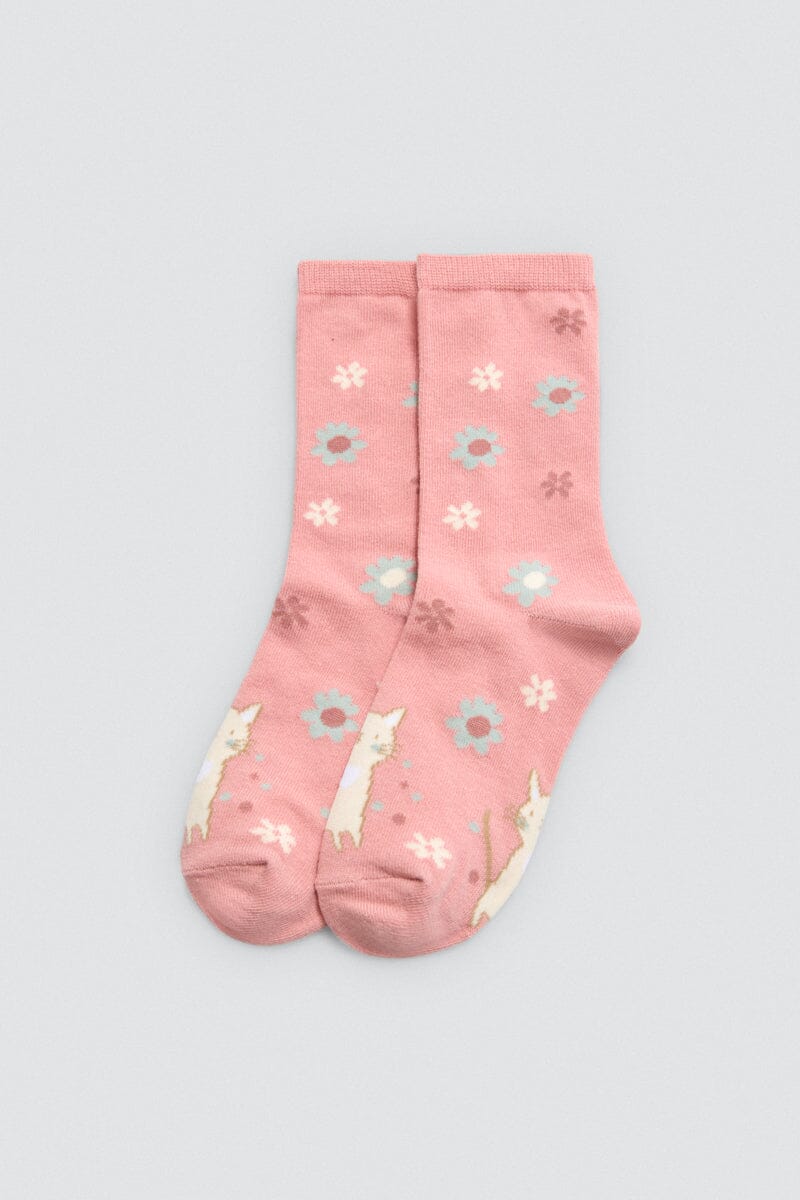 Dulces y cómodos, para cada día. Pack de 2 calcetines para niña con puño antipresión y divertidos motivos de gatos y flores.