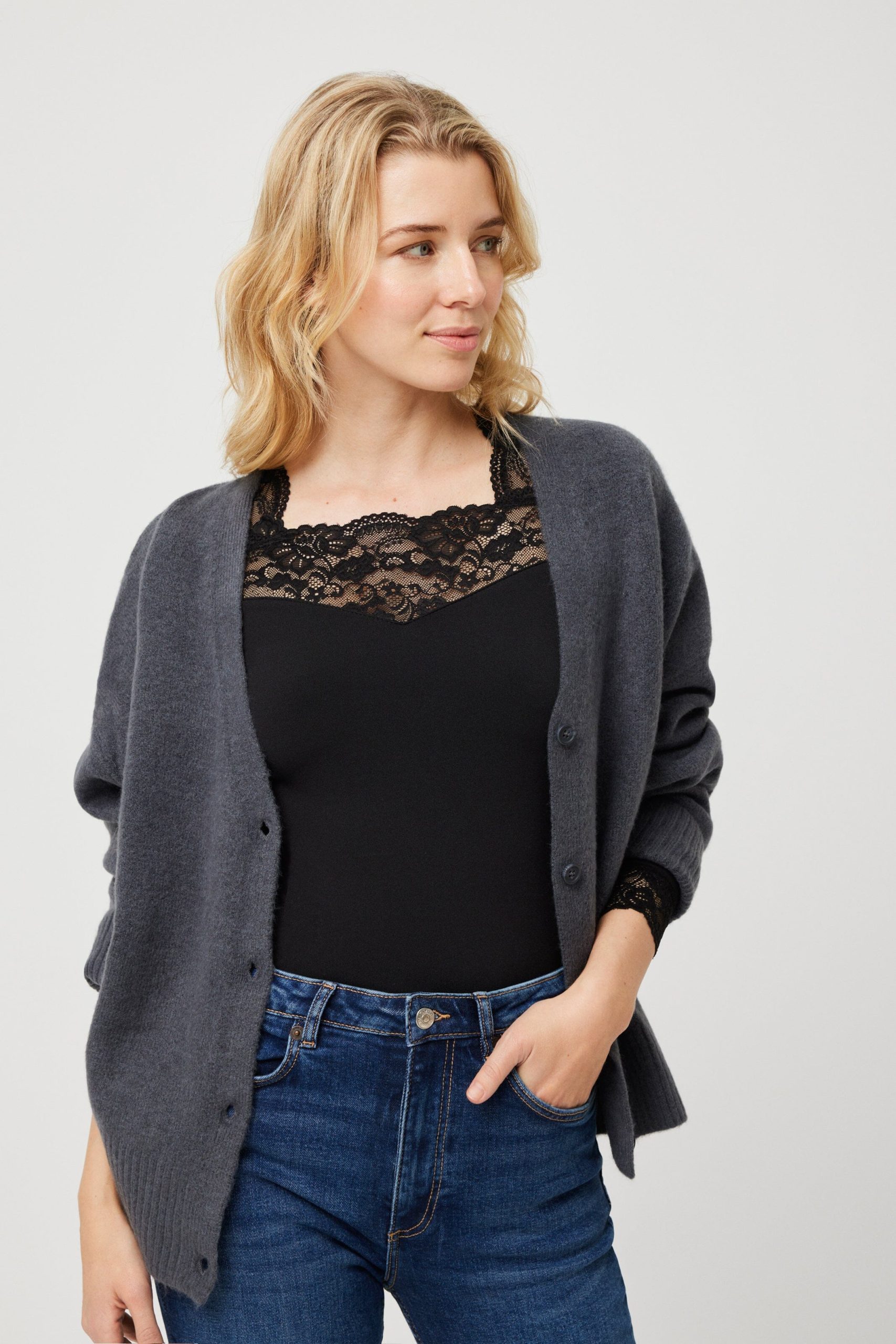 El diseño destaca por su sofisticado detalle de encaje en la parte superior del pecho y en las muñecas, aportando un toque femenino y delicado que la convierte en una prenda no solo funcional, sino también atractiva y versátil. Gracias a su ajuste entallado, puedes usarla tanto como ropa interior térmica, debajo de otras prendas, o como una pieza protagonista en un look casual, combinándola con vaqueros o chaquetas.