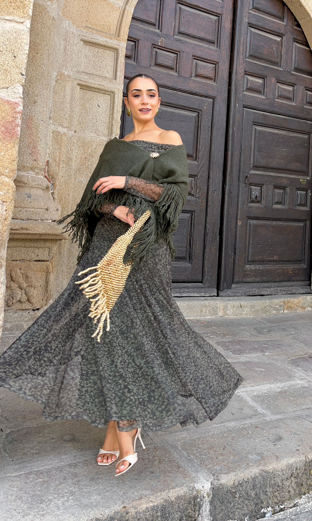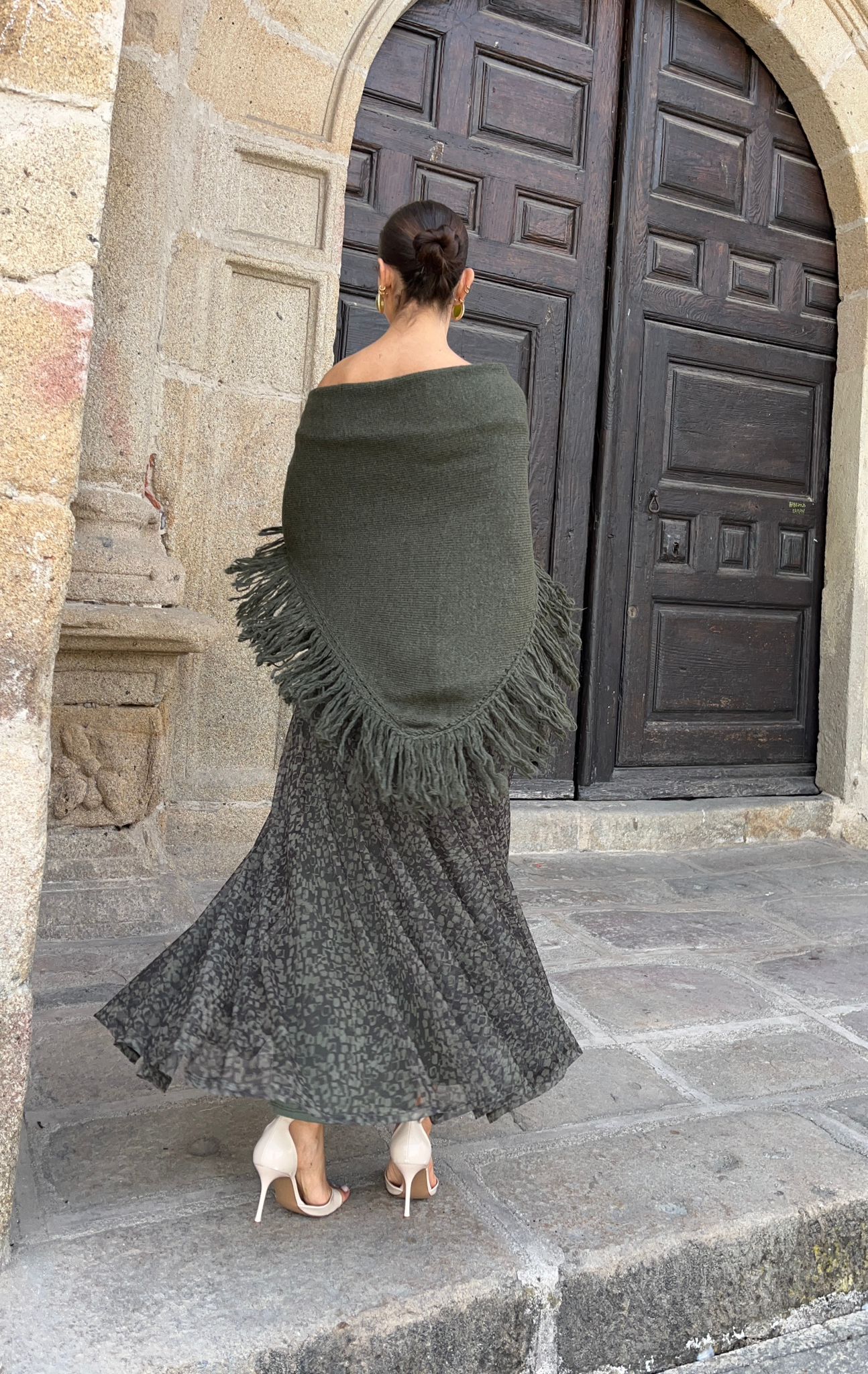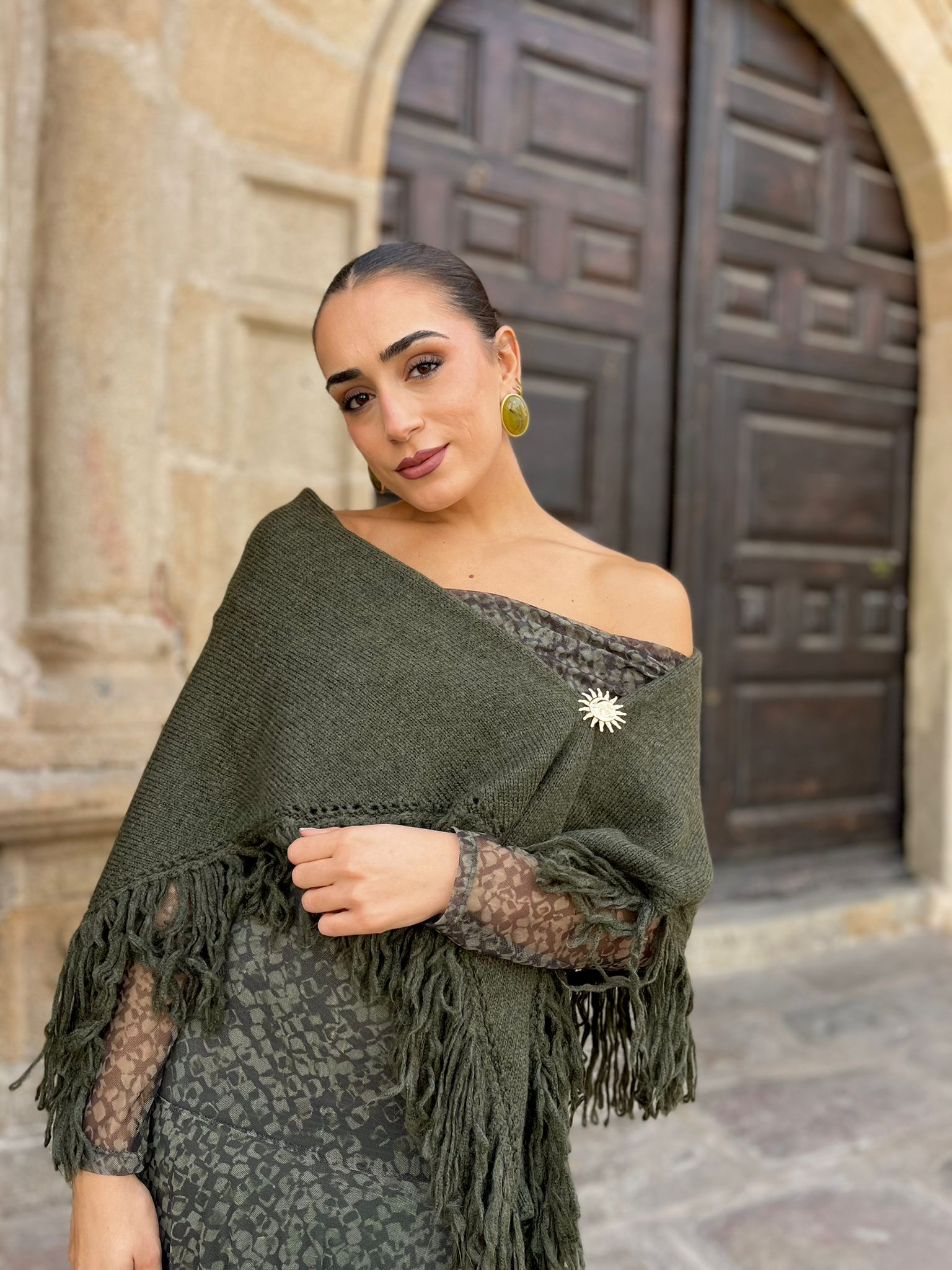 Capa poncho en punto en triángulo y terminado en flecos. Un modelo de capa ideal para los eventos de este otoño/invierno, abrígate con un plus de estilo y tendencia.