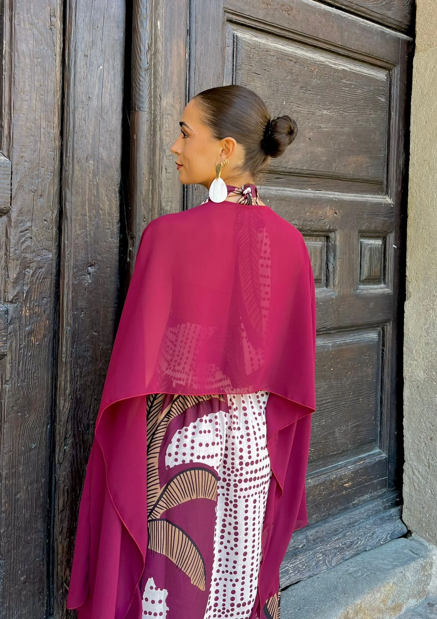 Capa en gasa con abertura para el cuello, simétrica delante y detrás.