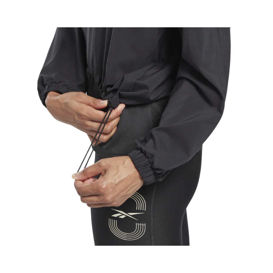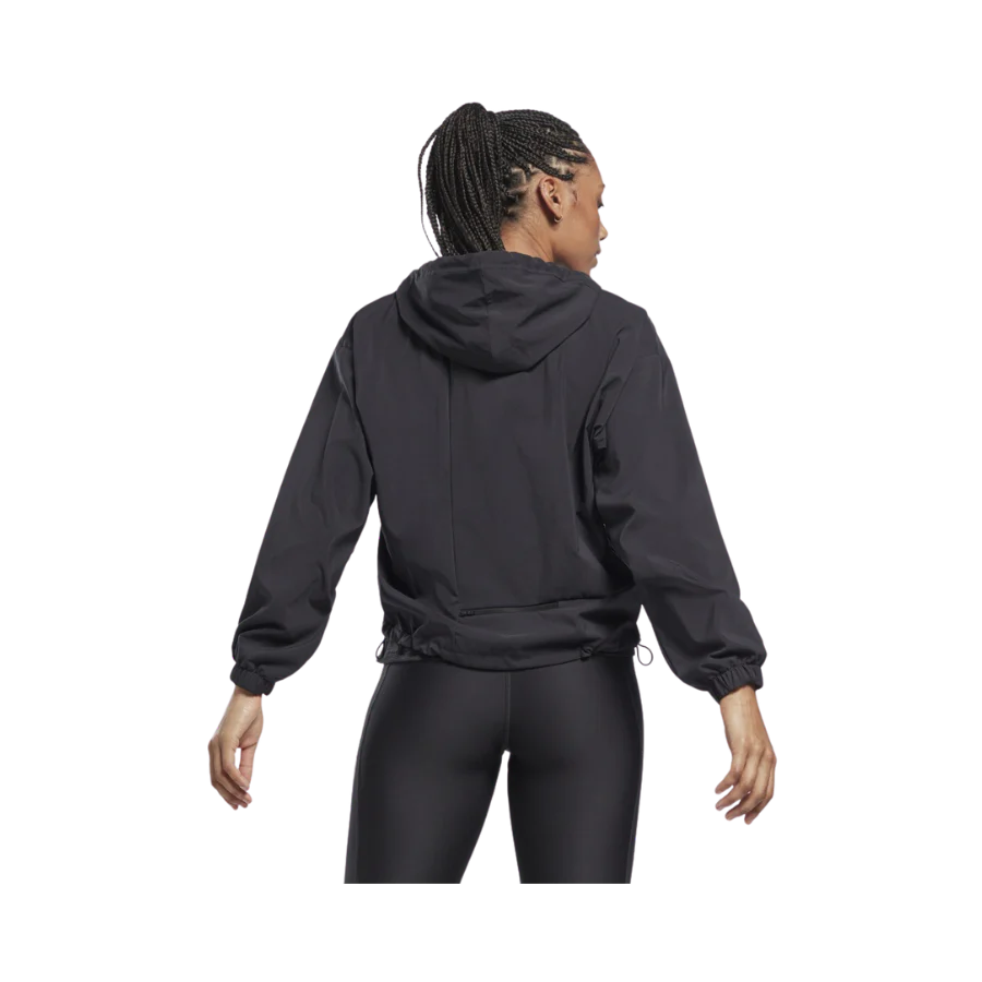 Esta casaca Reebok para mujer presenta un corte holgado perfecto para combinar con otras capas. Ajusta el dobladillo y la capucha para aumentar el nivel de confort. El bolsillo trasero con cremallera es perfecto para llevar contigo todos tus imprescindibles.