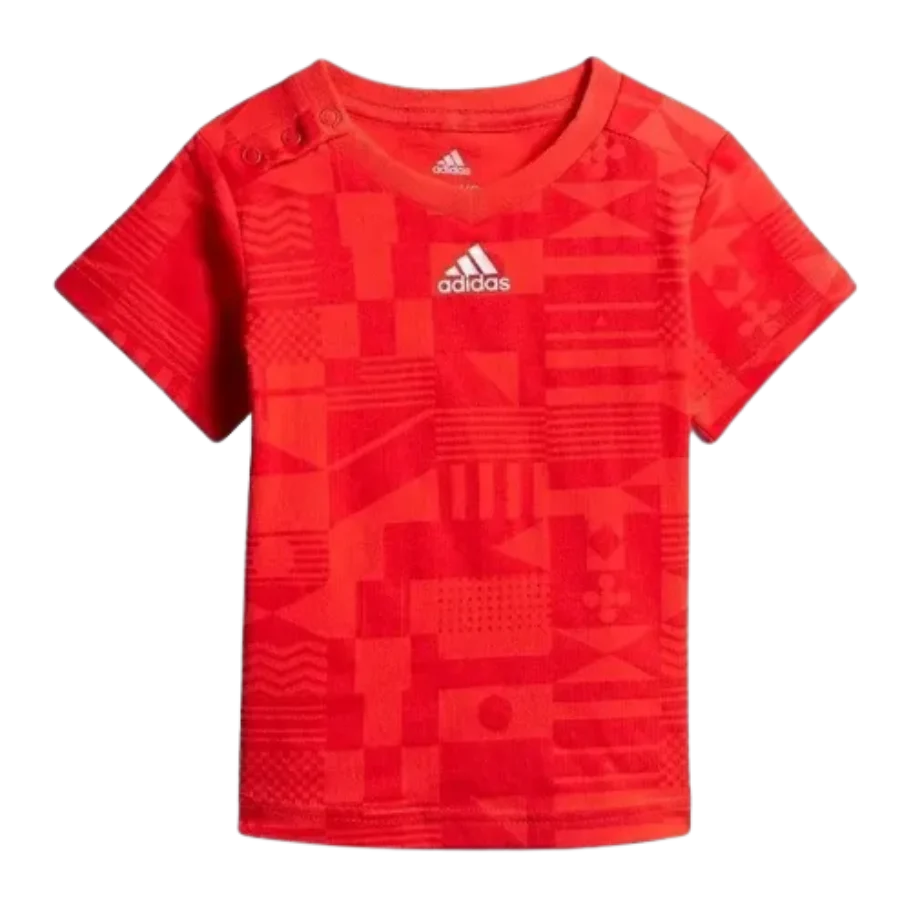 Los niños correrán por todas partes envueltos en un estilo inspirado en el fútbol con este conjunto de playera y shorts para bebé. El cuello en V con estampado moderno y un «10» en tinta metalizada sobre la espalda le dan a la playera un look auténtico de uniforme de fútbol. Además, viene con cierre de botones a presión para ponerla y quitarla con facilidad. La shorts trae un cordón ajustable en la cintura para un ajuste seguro.