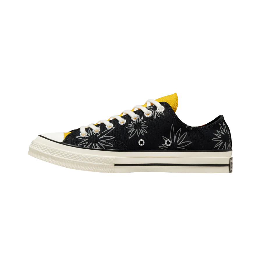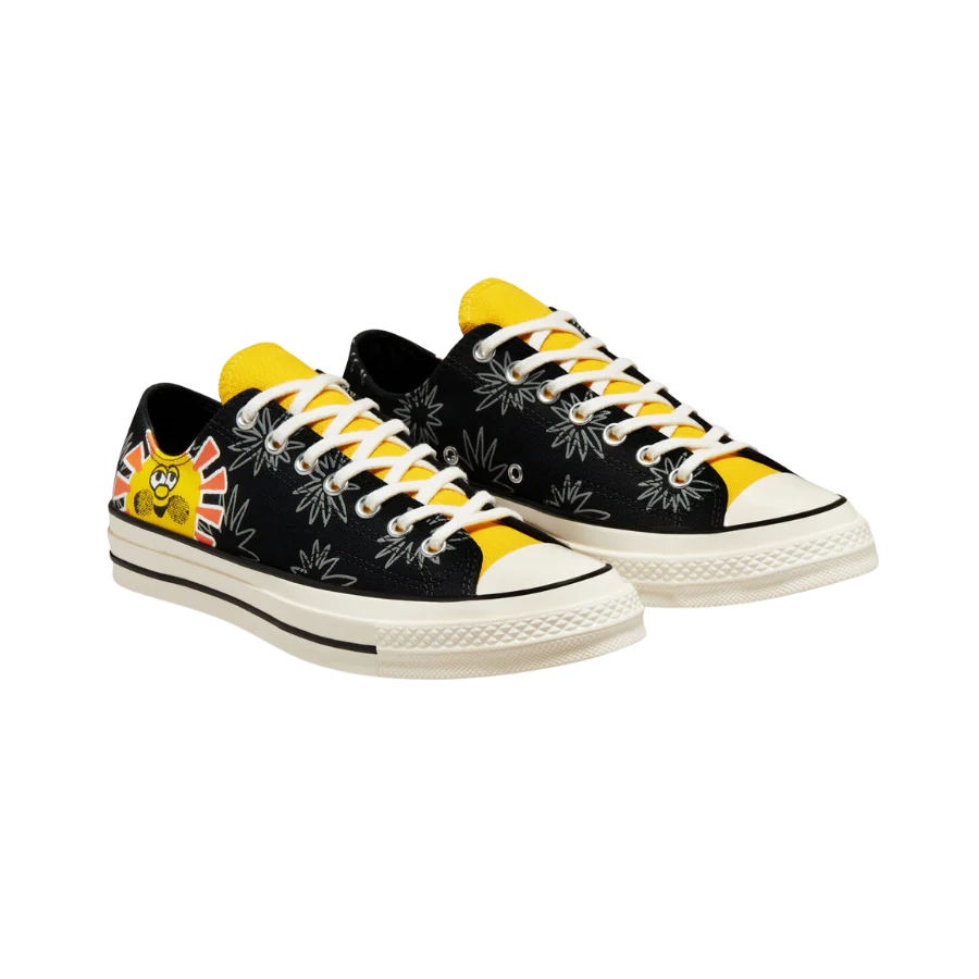 Los colores brillantes y la alegría desenfrenada brotan del Chuck 70 premium, envolviendo este look jovial en vibraciones de bienestar. Los gráficos florales soleados florecen en el panel interior, mientras que la colorida marca denominativa «Sol» en el panel exterior duplica la inspiración ligera y brillante. Las rayas clásicas de la entresuela, la puntera de goma y la puntera de goma fundamentan este estilo en nuestra herencia, mientras que las actualizaciones modernas, como la plantilla OrthoLite y las costuras aladas en la lengüeta, ayudan a mantenerlo cómodo.