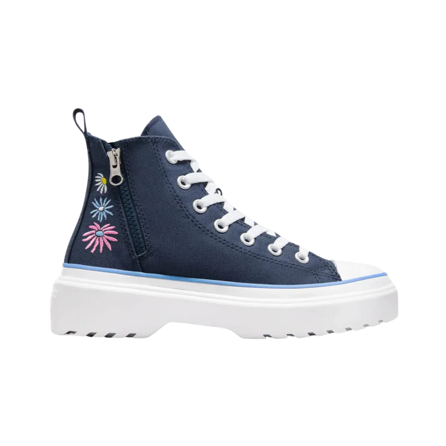 Las flores estallan en el talón de estas plataformas Chuck Taylor. Una cremallera y un tirador en el talón facilitan su calce, y la suela con relieve brinda tracción de alta calidad. No olvides detenerte y oler las flores.