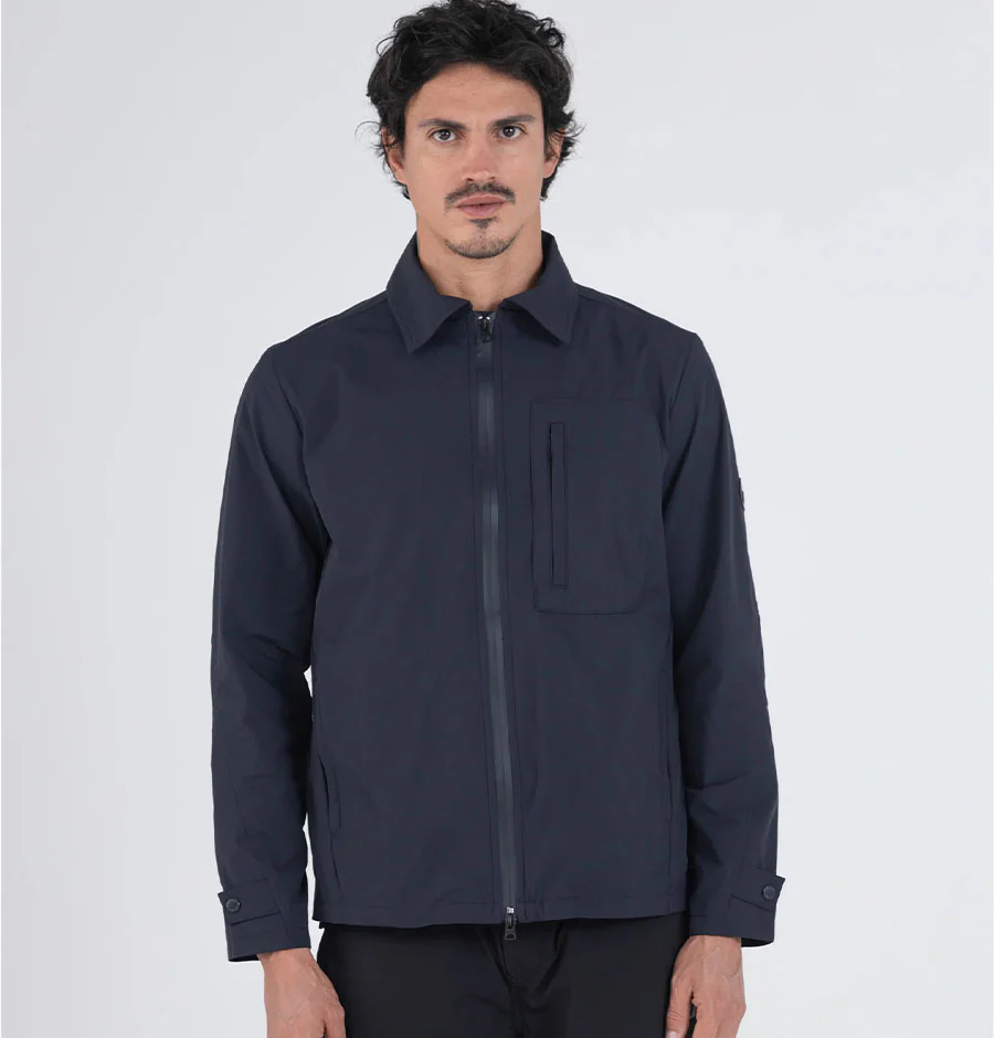 La Chaqueta Semi Fit Vapor, combina un estilo atemporal con tecnología moderna. Su composición de nylon con elastano, permite que sea ligera, resistente y water repellent, (repele líquidos y ayuda a aislar la humedad) la hace ideal para todo tipo de actividades. El cuello camisero y los broches ajustables en las mangas añaden versatilidad, mientras que el bolsillo frontal con cremallera aporta un toque práctico y contemporáneo.