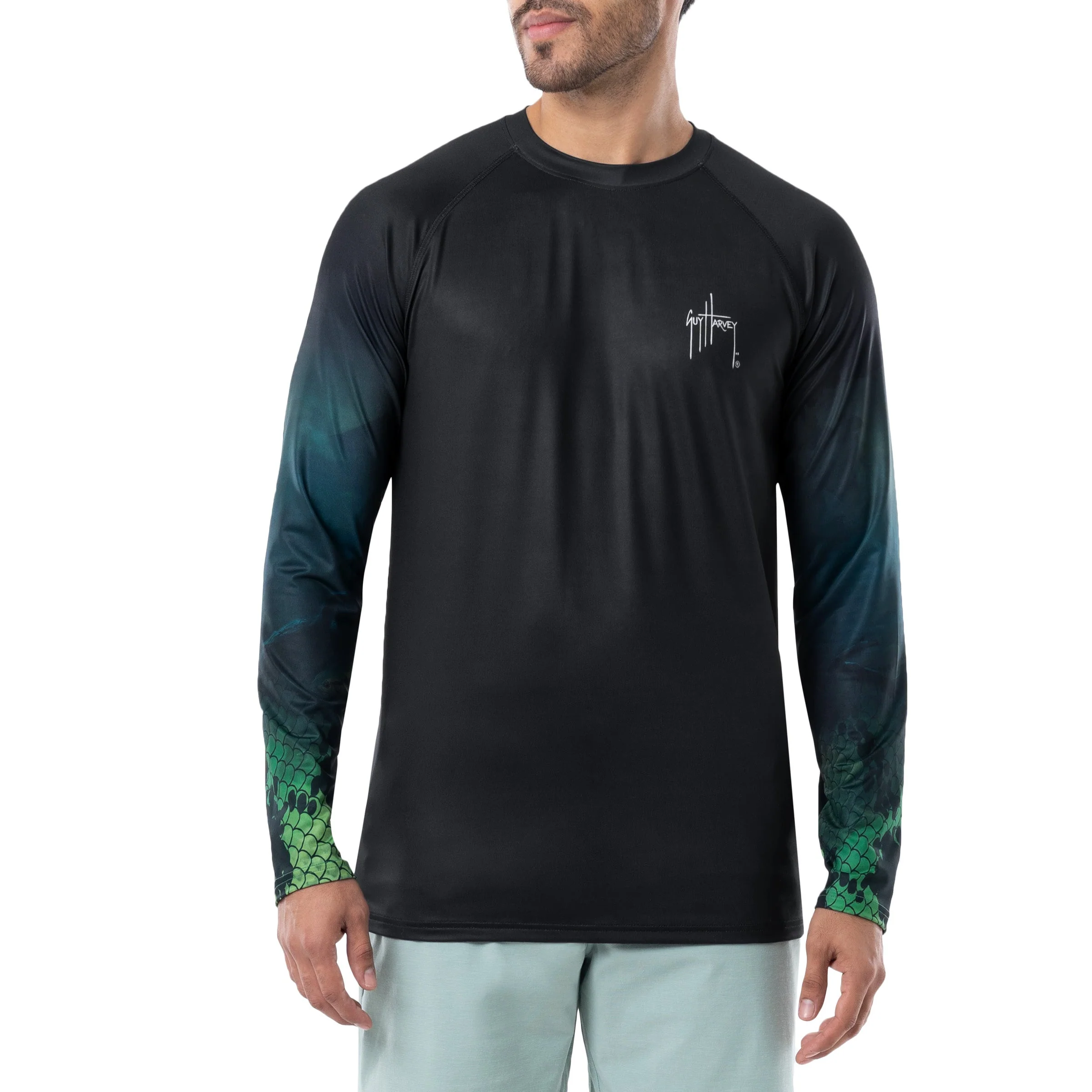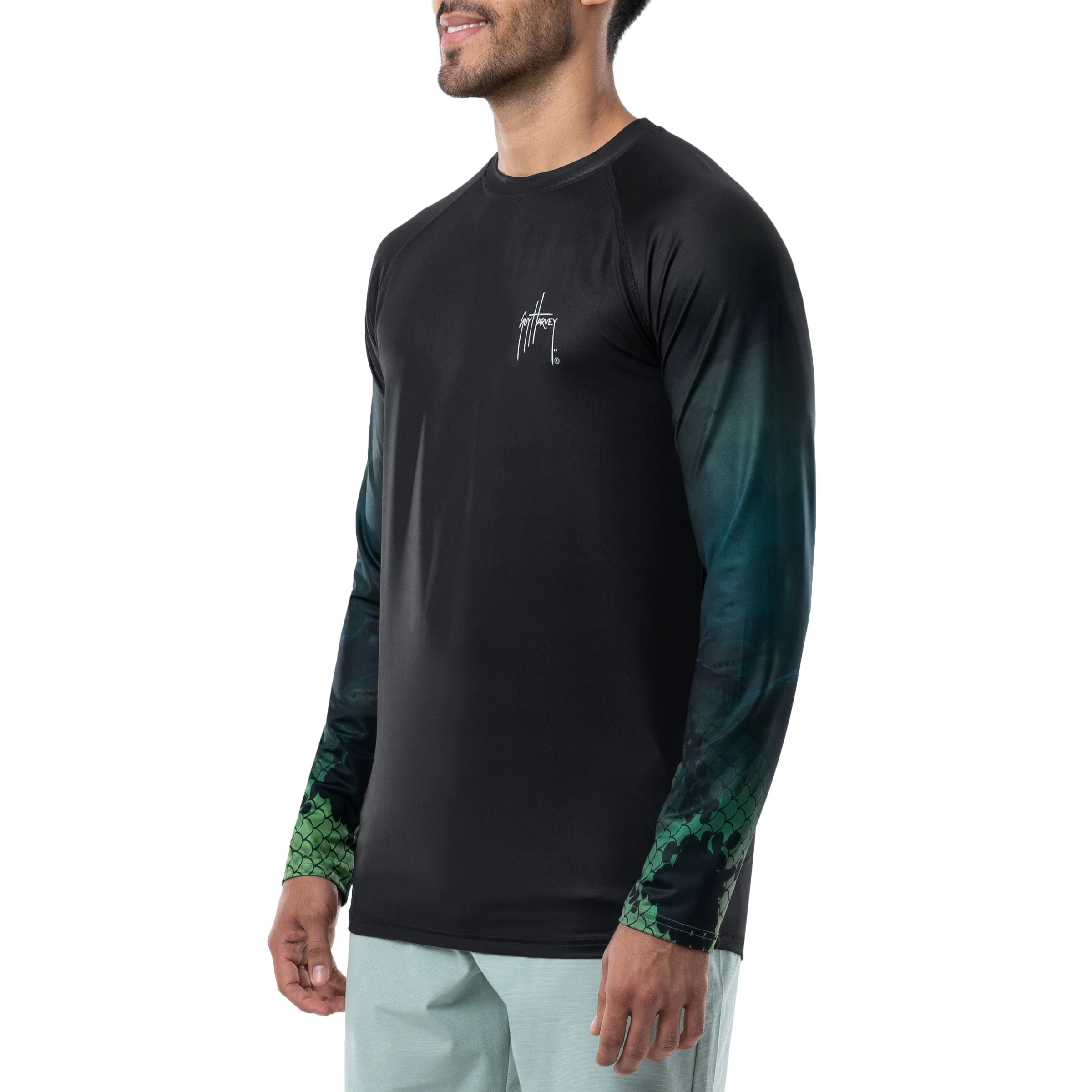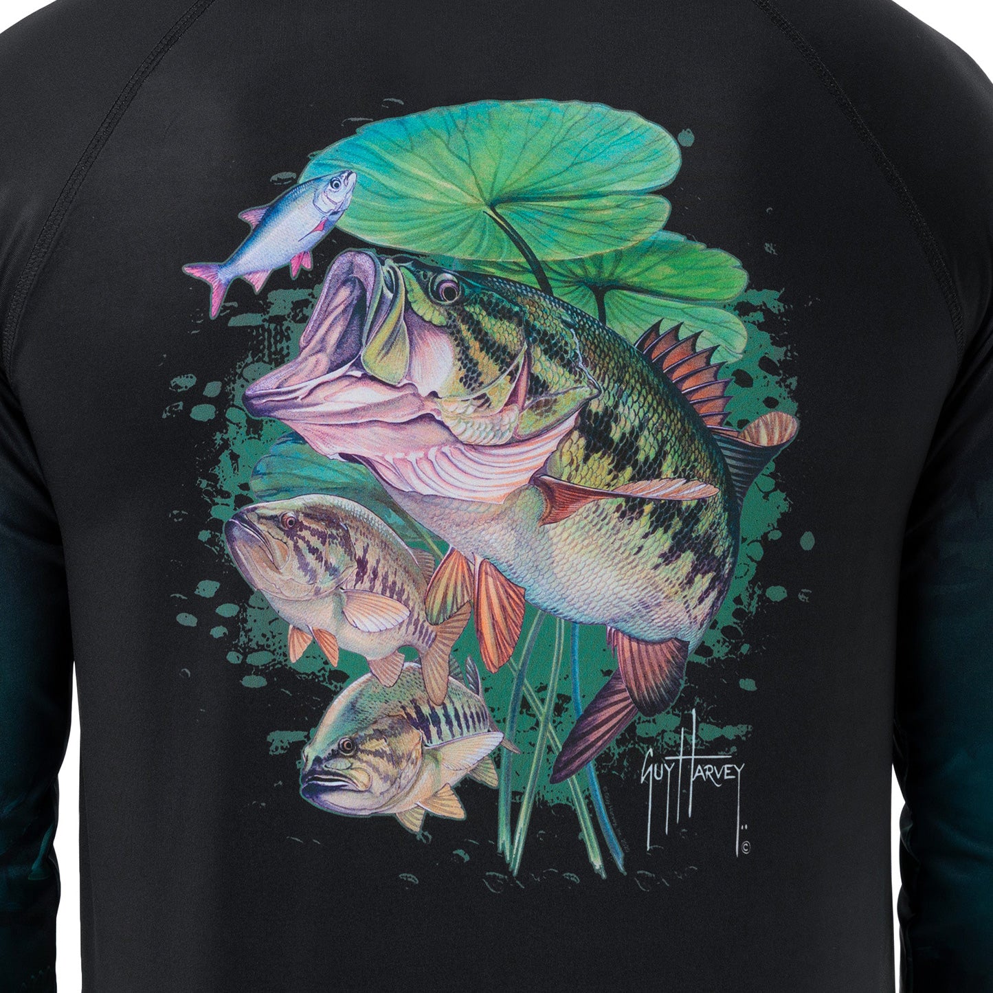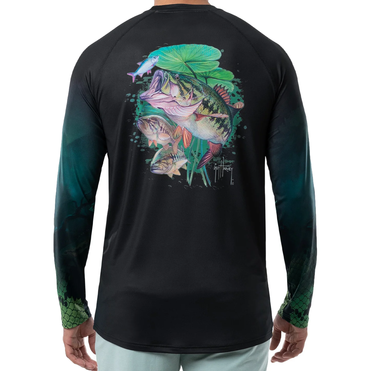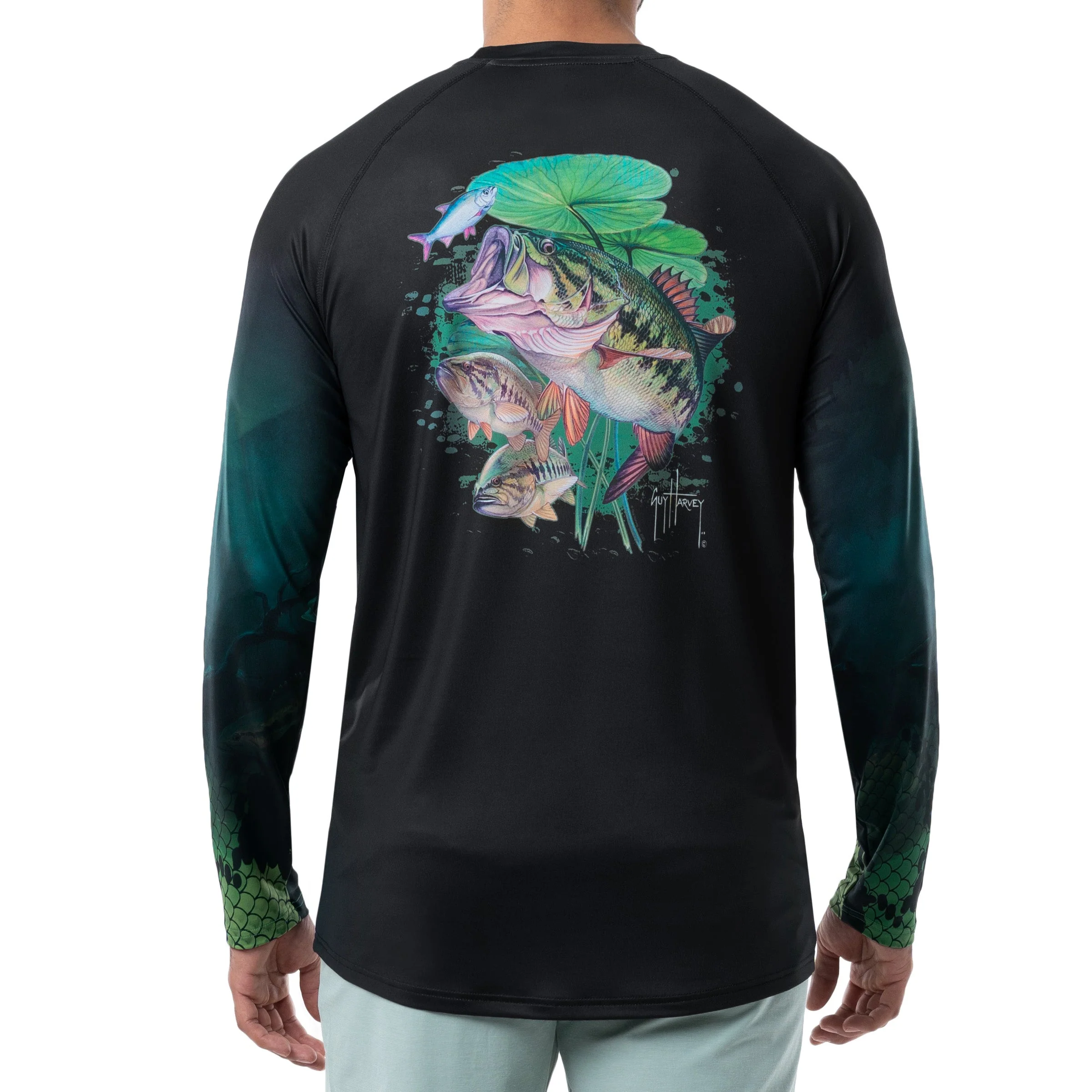 Obtenga la protección adicional de esta camiseta de protección solar Guy Harvey UPF 50 que presenta la obra de arte original de Guy de un bajo en la parte posterior. Disfrutarás de libertad de movimiento con esta camiseta que tiene mangas raglán y está hecha de 95% poliéster/5% spandex. Como parte de sus esfuerzos por la conservación de los océanos, esta camiseta está confeccionada con REPREVE, la fibra de rendimiento de marca más confiable hecha de materiales reciclados, incluidas botellas de plástico. La mejor camiseta para pescar, andar en bicicleta y hacer caminatas, tiene propiedades que absorben la humedad para mantenerte fresco y seco todo el día. La etiqueta sin etiquetas proporciona mayor comodidad. Lavable en la lavadora.