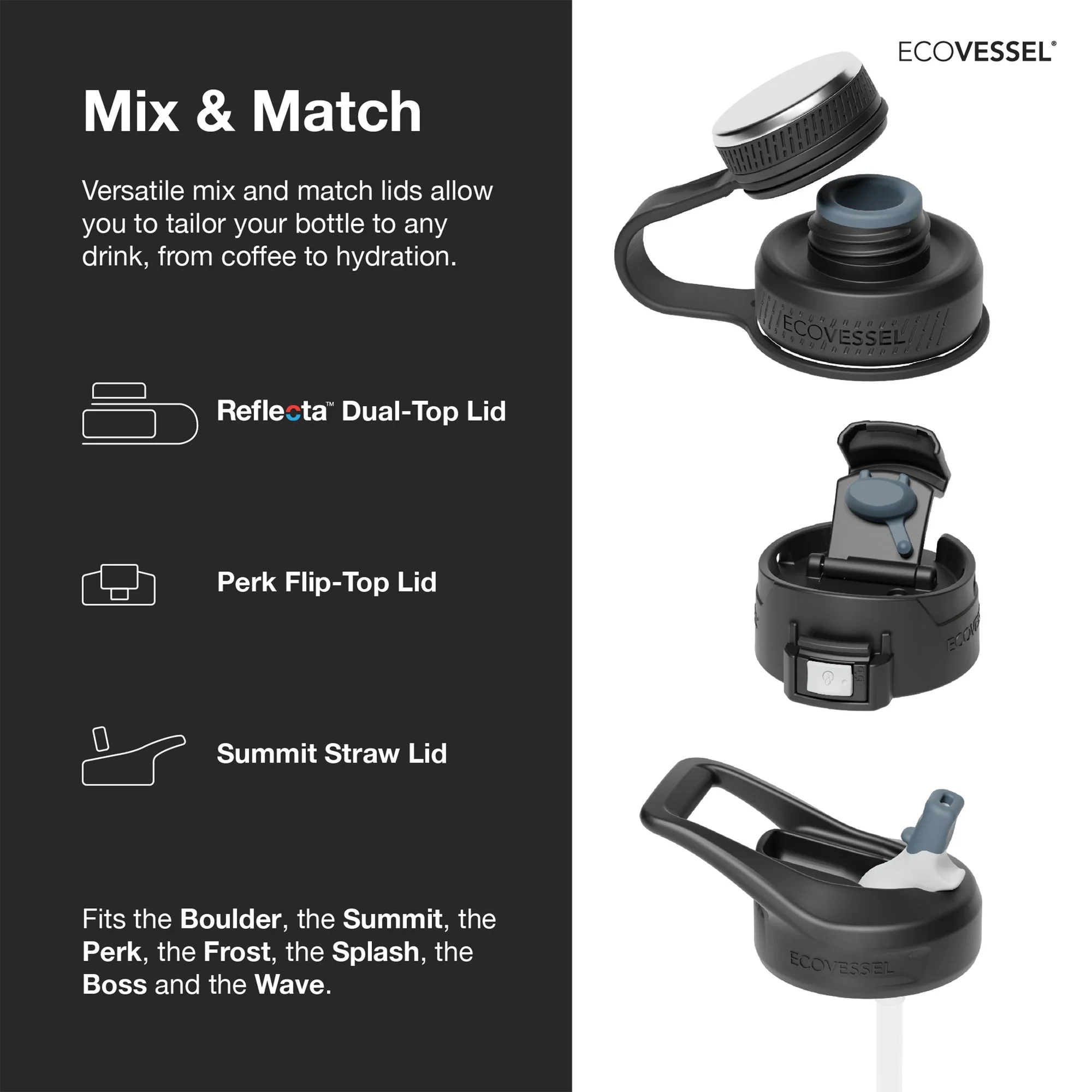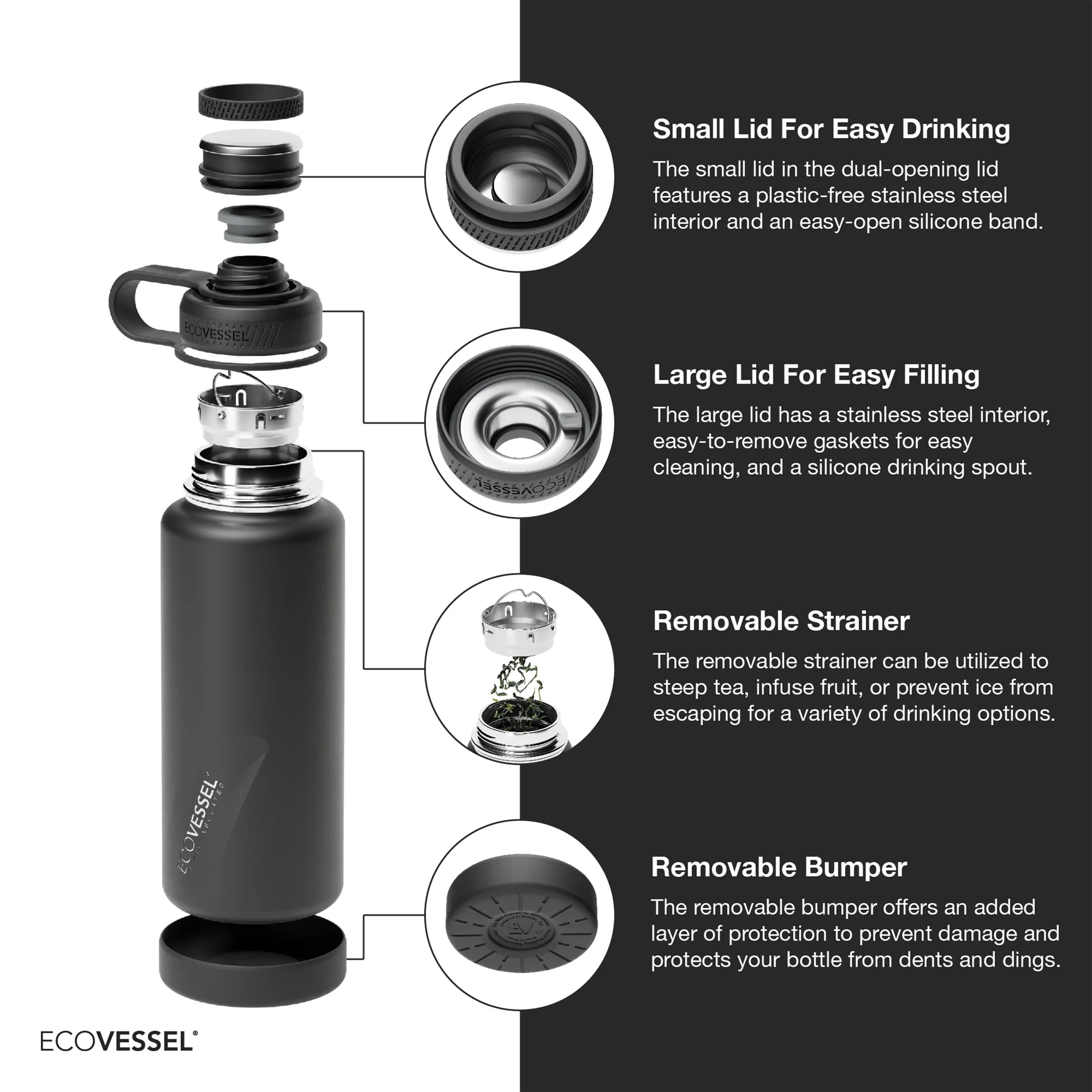 Tapa de rosca aislada Reflecta™ : ¡las bebidas nunca tocan el plástico!
