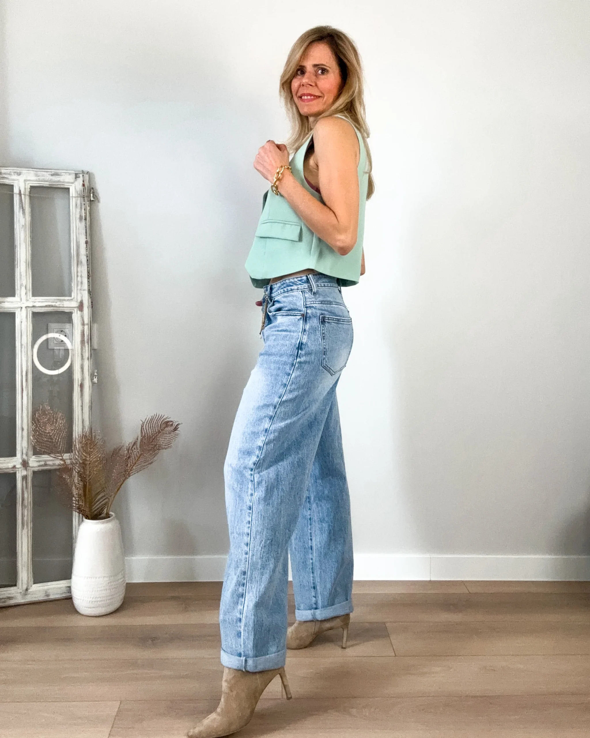 Jeans mom fit claro estilo boyfriend. Un jeans muy estiloso y muy cómodo.