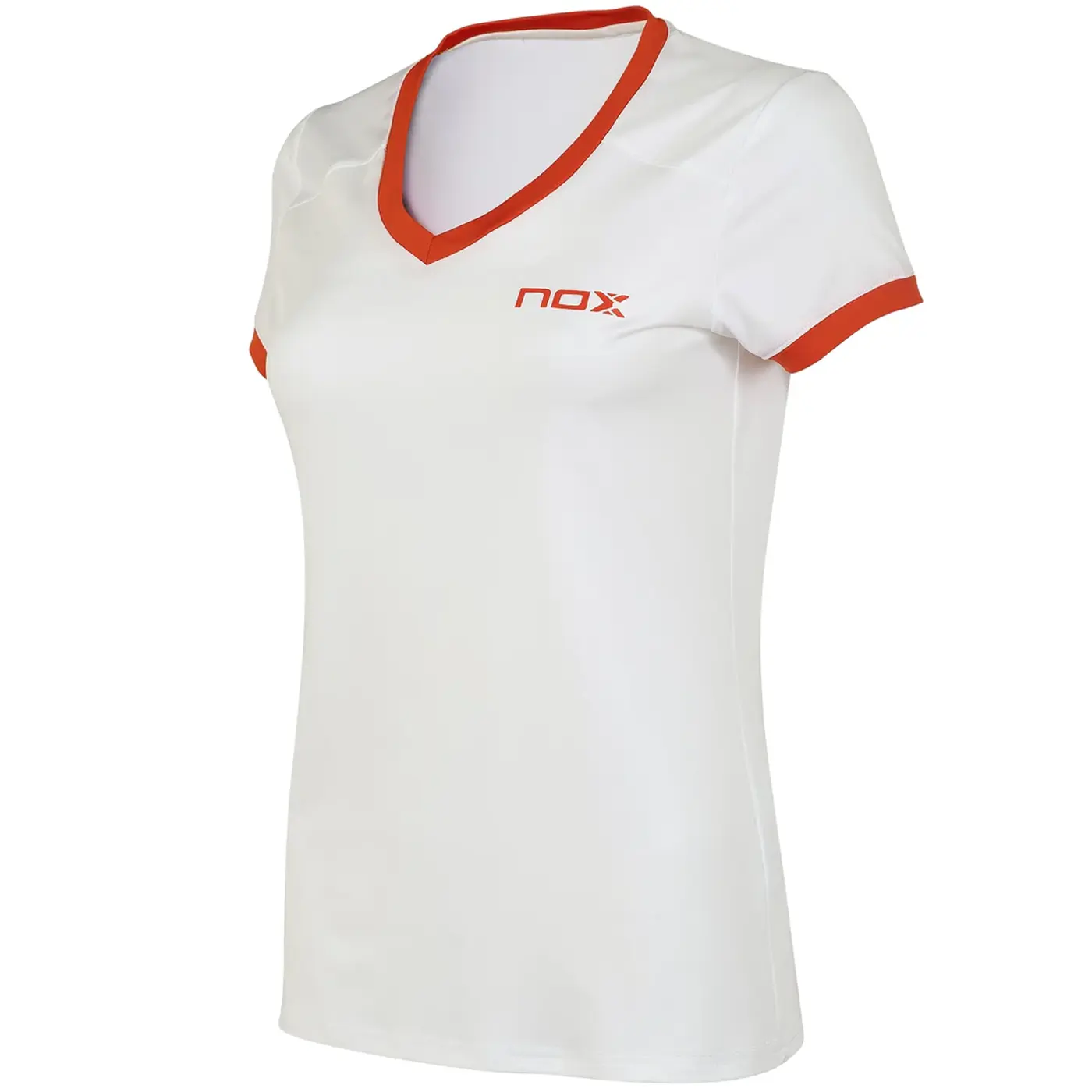 Camiseta de pádel para mujer de media manga y corte entallado. En rojo con detalles en rojo.