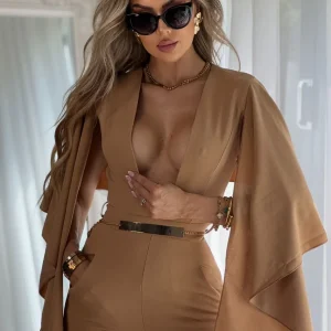Este enterizo rojo exuda sofisticación y confianza. Su diseño ajustado al cuerpo realza la silueta con elegancia, mientras que el escote redondo sin mangas aporta un aire moderno y refinado. El detalle más llamativo es su cinturón decorativo con eslabones, que añade un toque de distinción y estructura al conjunto.