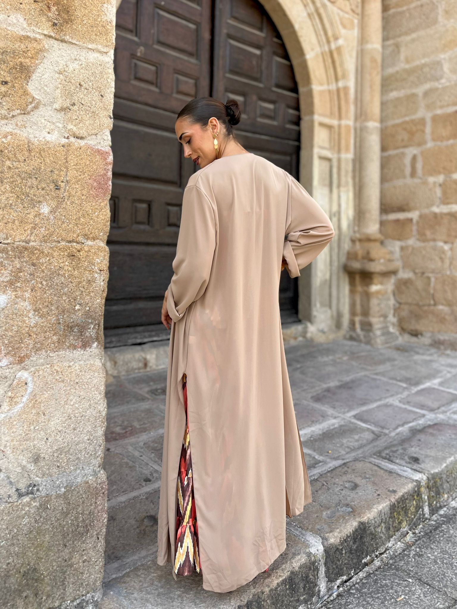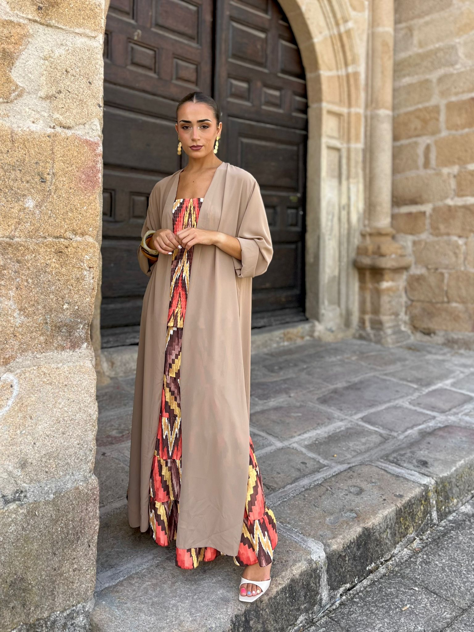 Kimono en GASA en manga larga y aberturas laterales. Ligeramente translúcido.