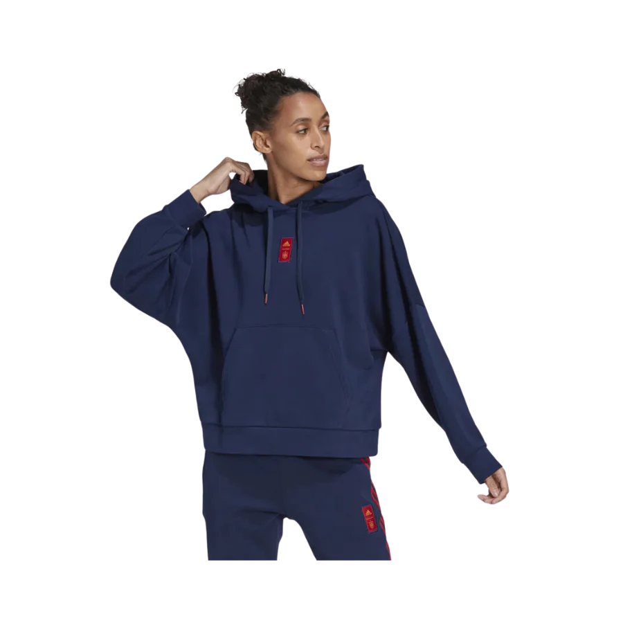 Lo bello de este deporte es que es impredecible. Ponte esta sudadera con gorro adidas de España para mantenerte cómodo aún cuando tengas altibajos. El ajuste holgado, los hombros caídos y la suave felpa francesa se combinan para brindar comodidad mientras sucede la acción. El escudo del equipo es un símbolo de tu apoyo incondicional. Nuestros productos de algodón apoyan el cultivo de algodón sostenible.