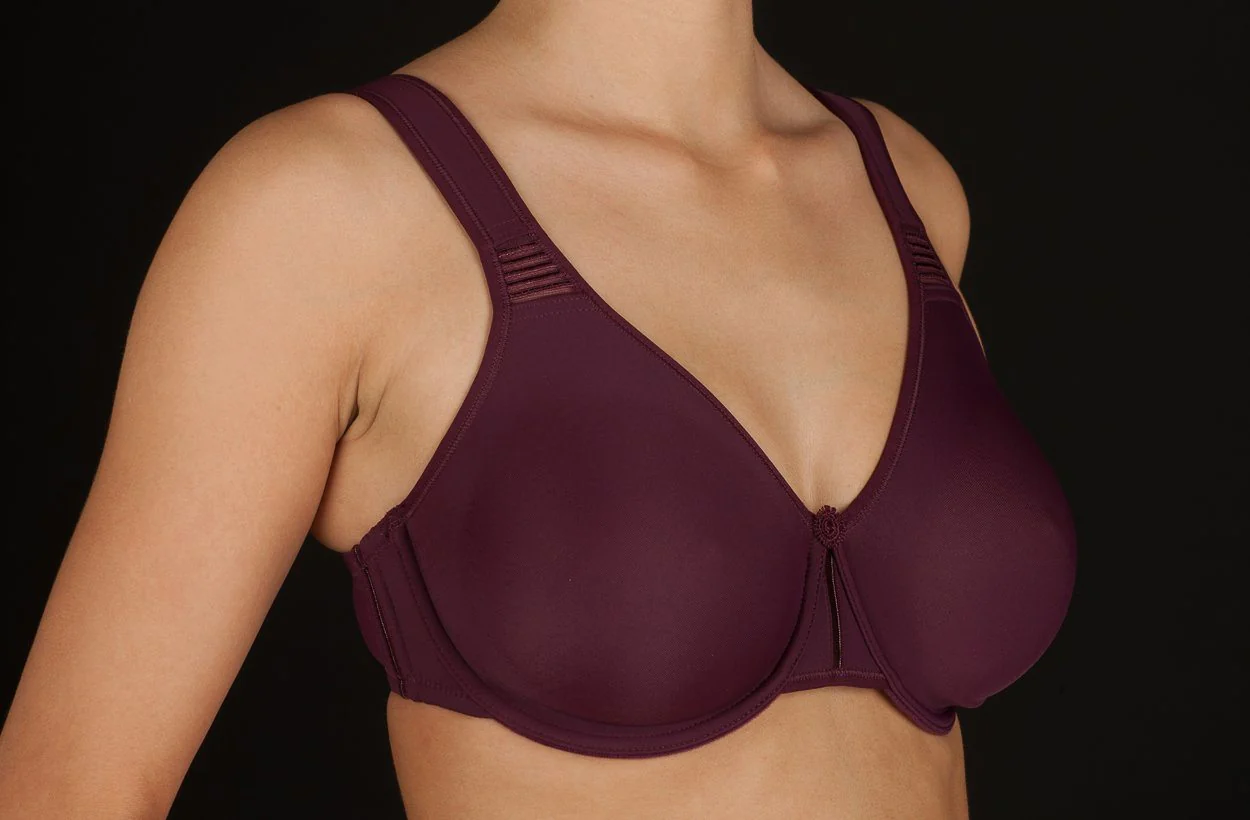 Sujetador con aros, fabricado en microfibra de dos capas preformada.
