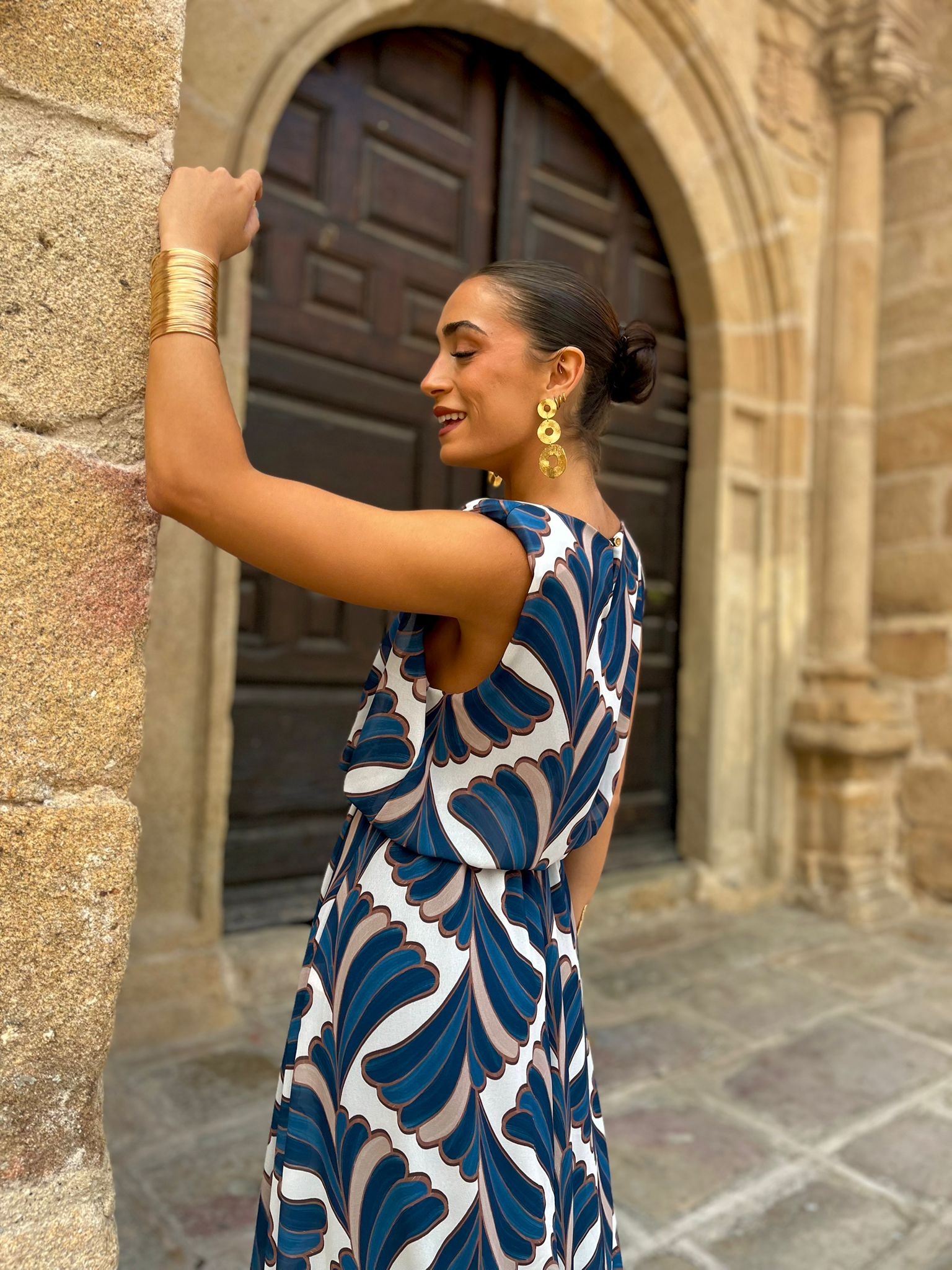Vestido fluído midi en gasa.