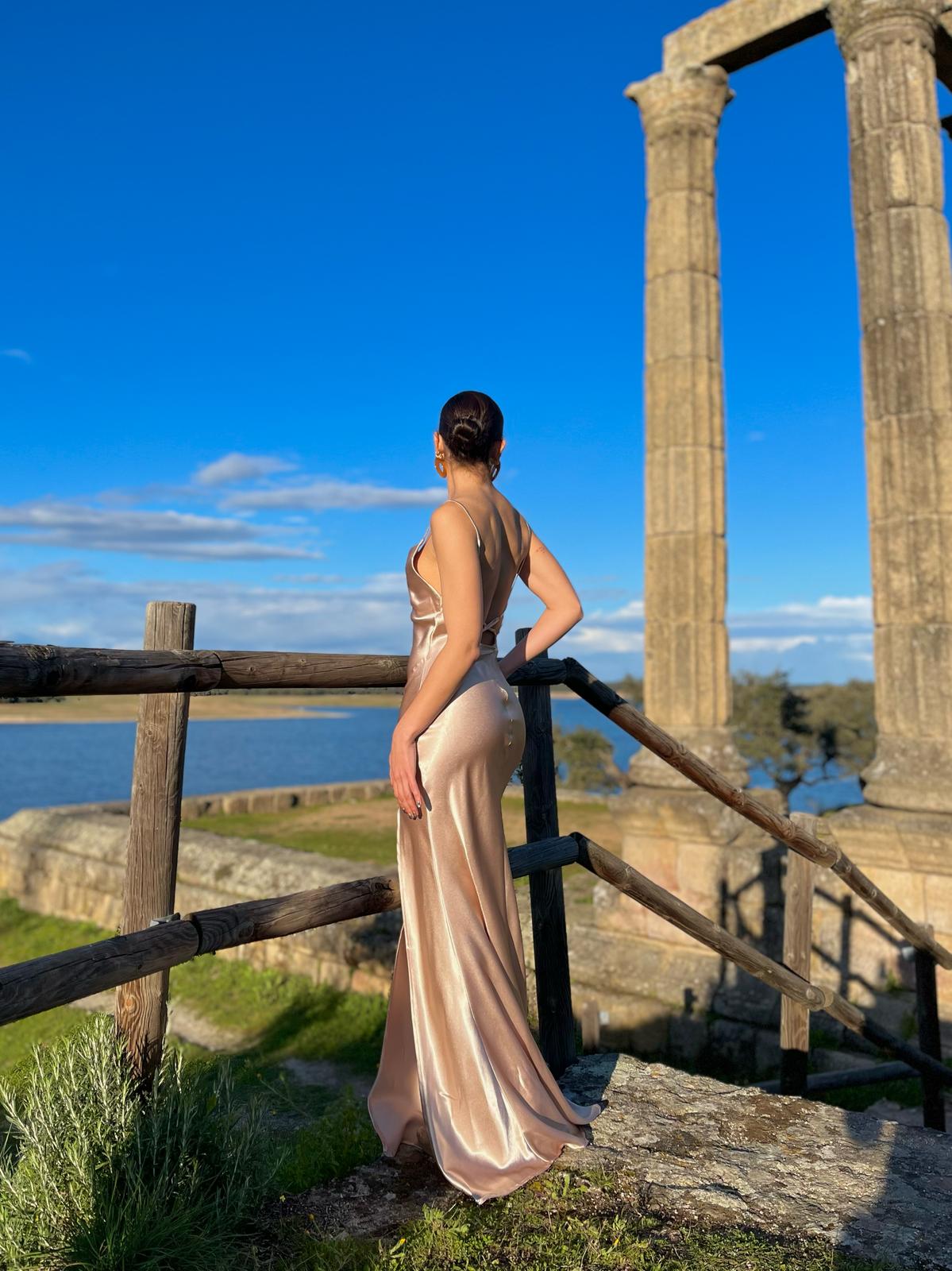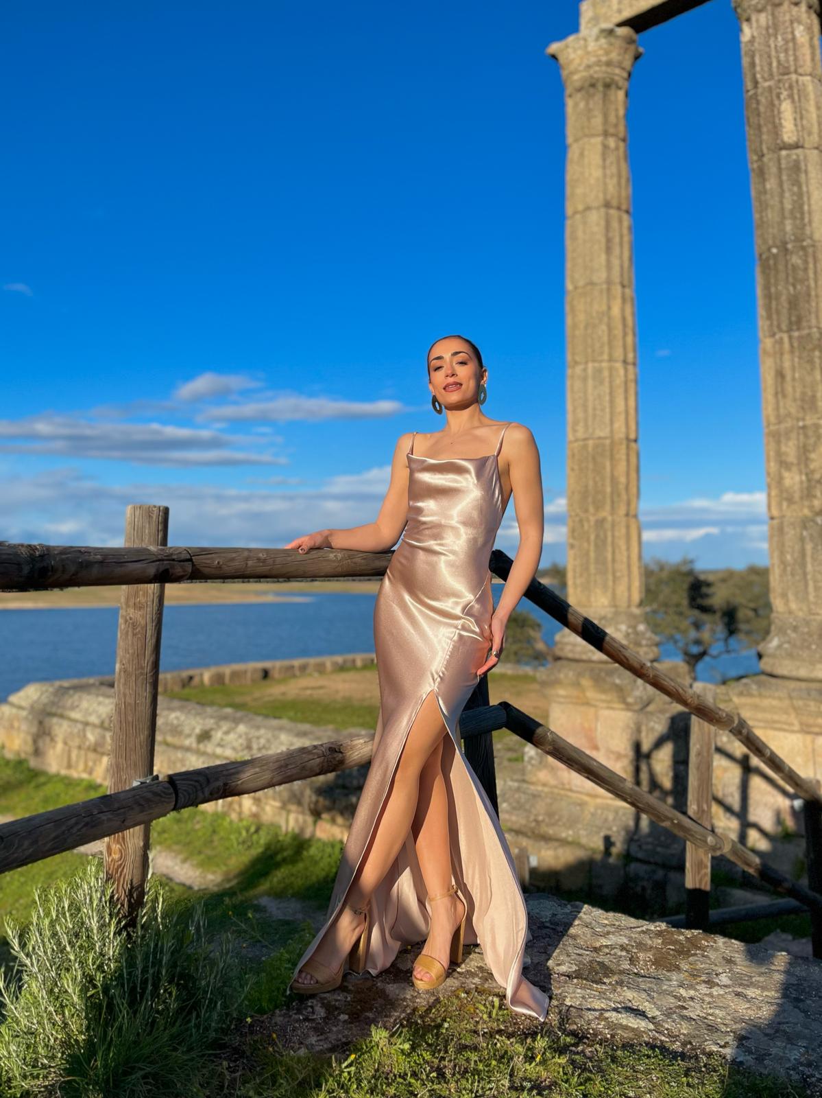 Puedes combinarlos con la capa de gasa beige para un total look muy estiloso y complementos en dorado