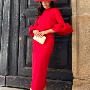Vestido midi ideal para mamis de comunión, bautizo, o invitadas de boda tanto de mañana como de tarde.